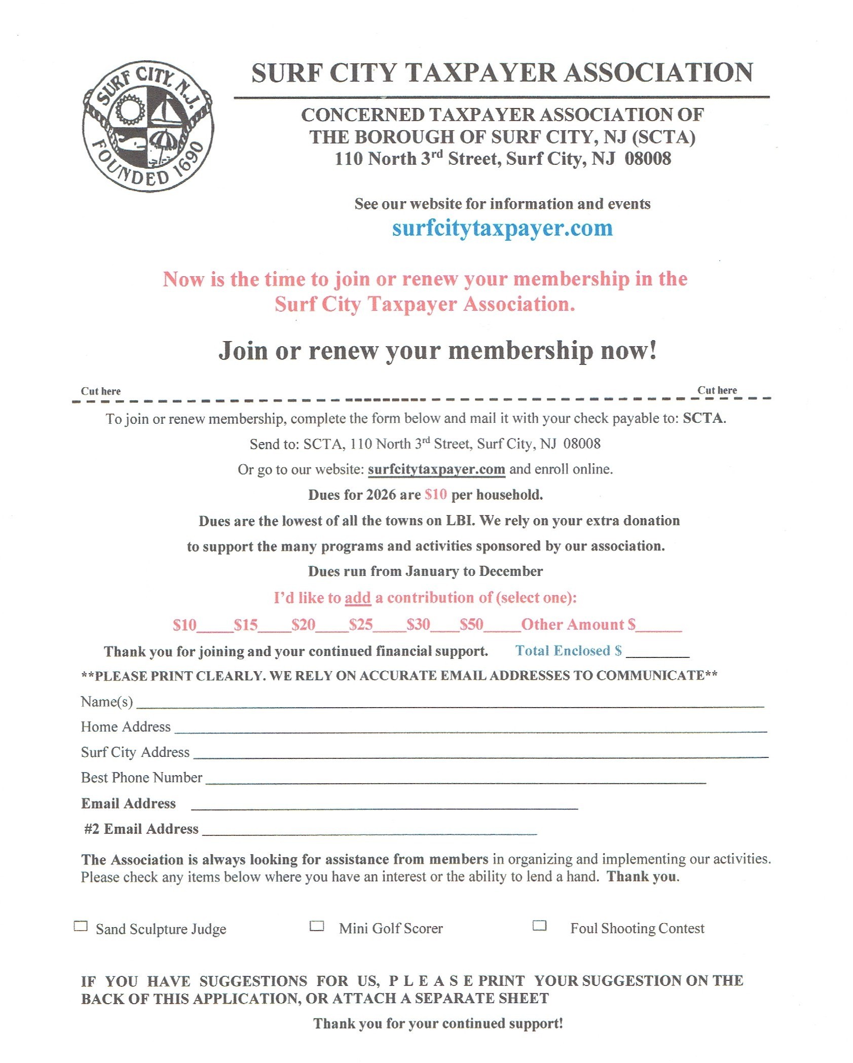 Now is the time to join or renew your membership in the Surf City Taxpayers Association as we work to make Surf City a better place to live: